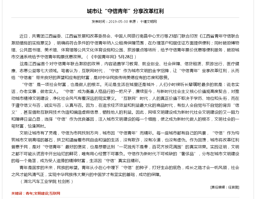 【十堰文明网】城市让“守信青年”分享改革红利
